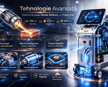 Utilizăm tehnologia diodă 808nm și triplu val pentru eficiență maximă. Răcirea intensă asigură un tratament confortabil pentru toate tipurile de piele, cu rezultate vizibile după 4-6-8 ședințe.